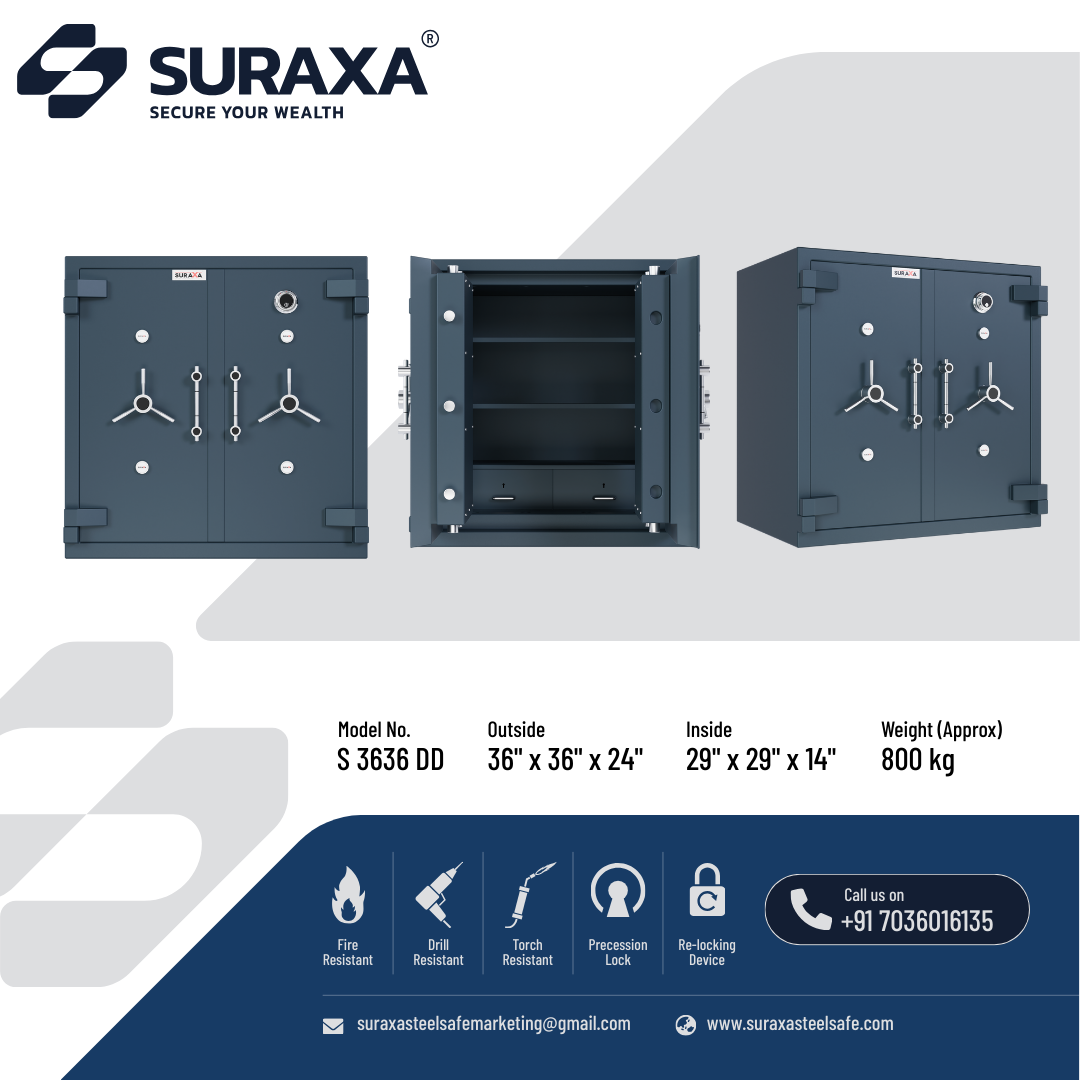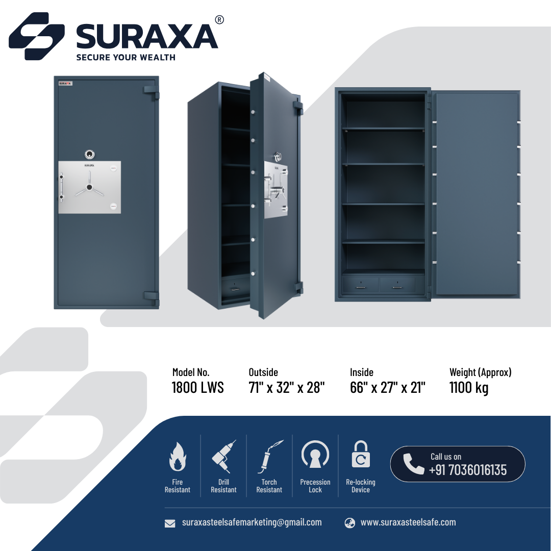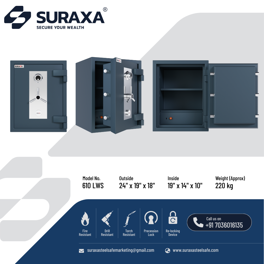 The locking mechanism is operated by a handle in the front and controlled by superior quality, dual control, and high precision 10 levers locks. These locks are unpickable and only the original keys will open them.