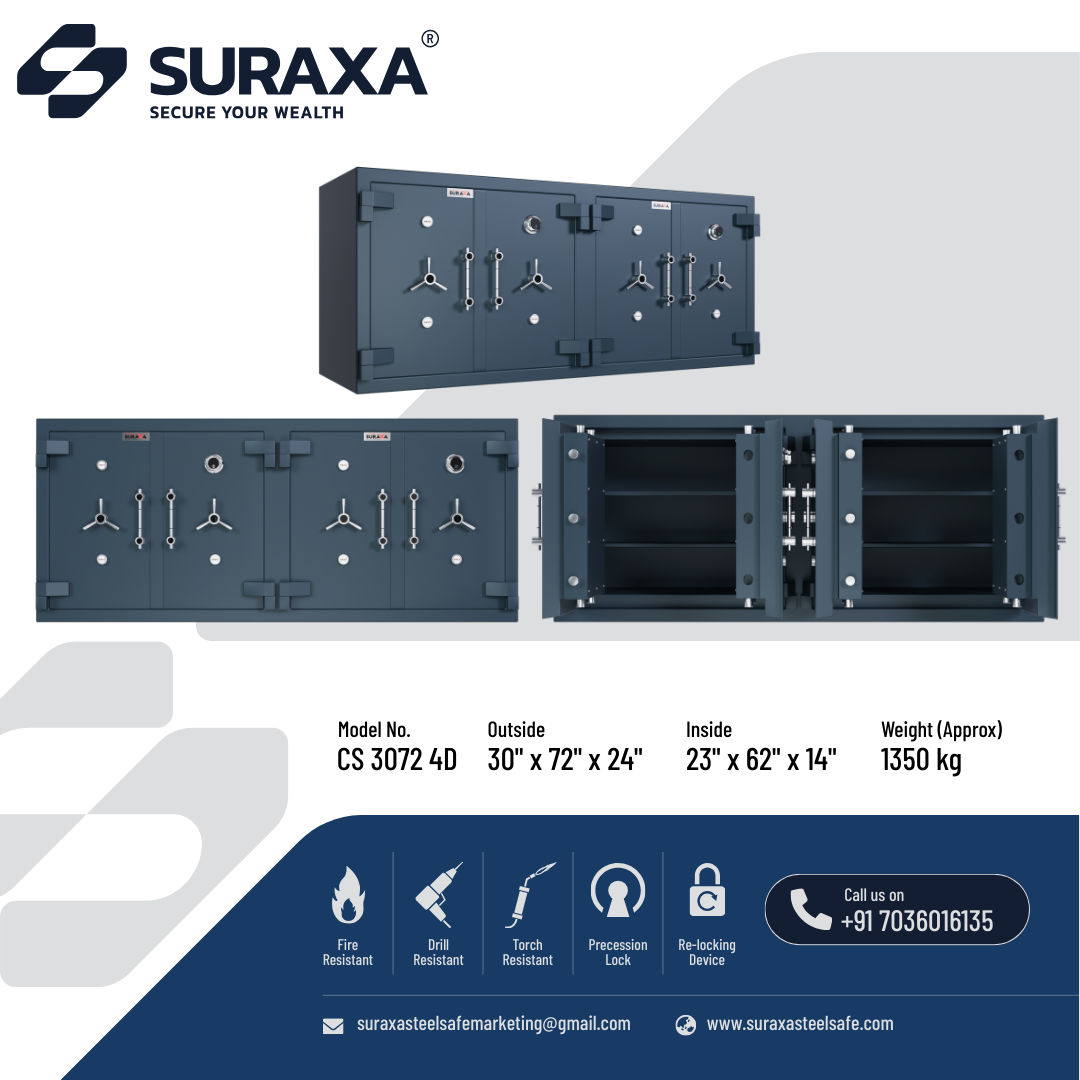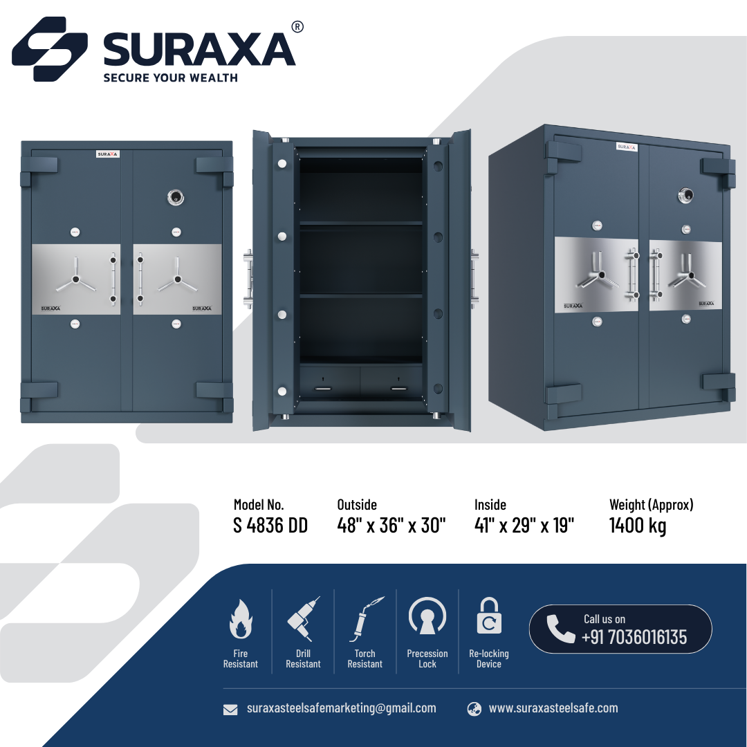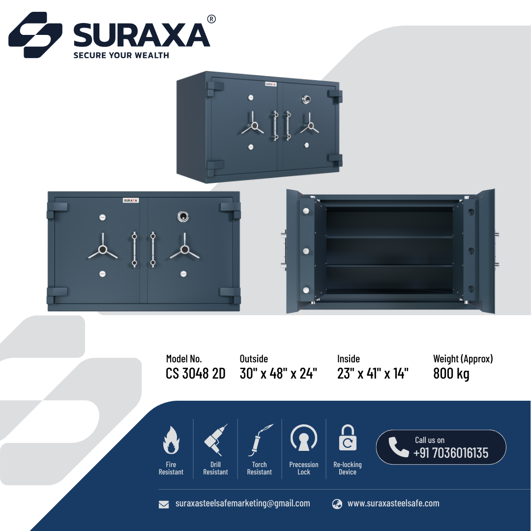 The locking mechanism is operated by a handle in the front and controlled by superior quality, dual control, and high precision 10 levers locks. These locks are unpickable and only the original keys will open them.